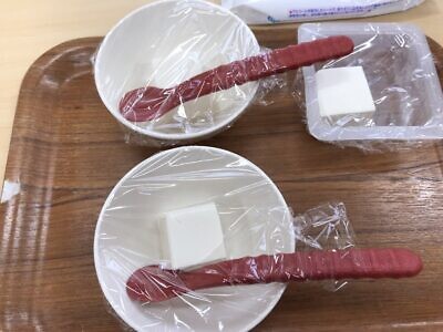 そして柔らかさを実際に体験いただいたり、その日の園の離乳食のメニューを見ていただきました。