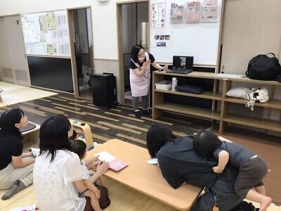 離乳食とはどういったものか、ステップアップの順番、離乳食作りが苦にならない為のアドバイス、保育園での食事の様子の動画を交えながらお話ししていただきました。
